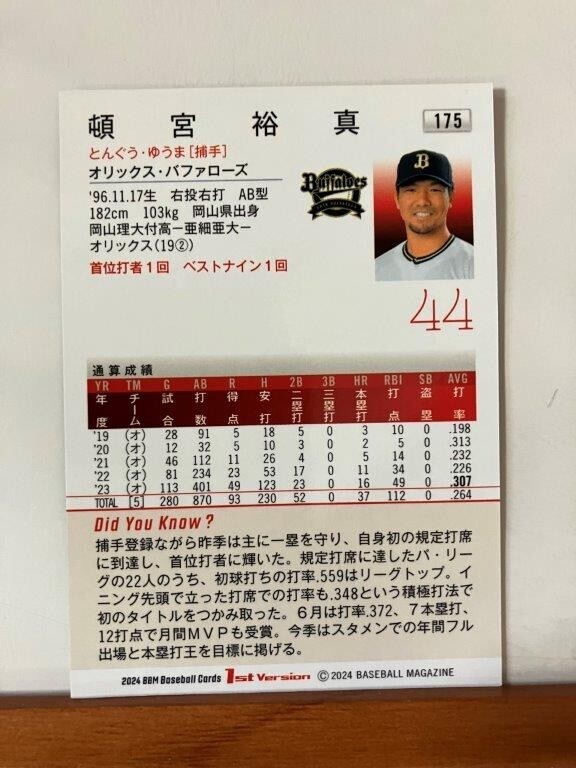 【2024 BBM 1st】175頓宮裕真(オリックス・バファローズ)レギュラーカード