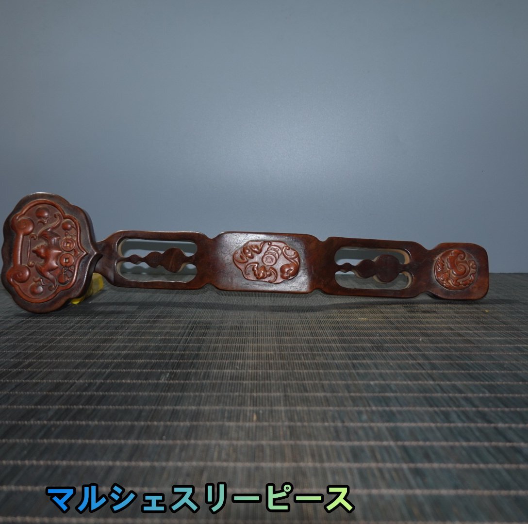 中国 古木彫り 花梨木象嵌黄楊木福寿如意 細密彫 時代物 中国美術 極細工 置物 賞物 木彫り 東洋彫刻 Y38326