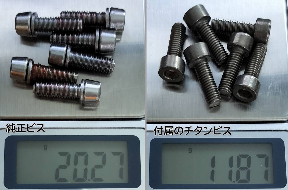 付属のチタン製ボルトに交換すると約8g軽量になります。