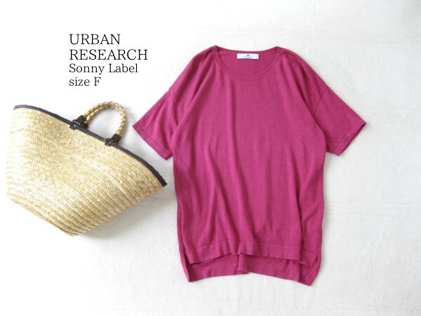 ☆URBAN RESEARCH☆コットンニット☆半袖☆ピンク☆F☆レーヨン混☆サマーニット☆SonnyLabel☆アーバンリサーチ