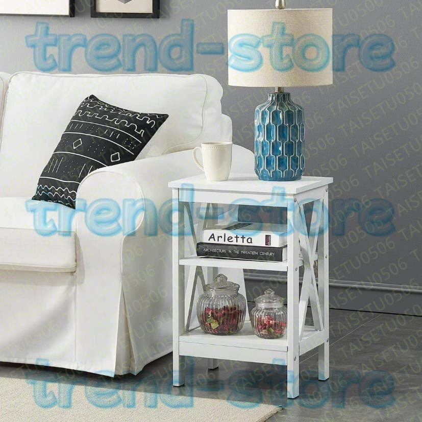 サイドテーブル エンドテーブル 3段 収納棚付き ベッドサイドテーブル ソファサイドテーブル ベッド横 ソファ横 コンパクト おしゃれ