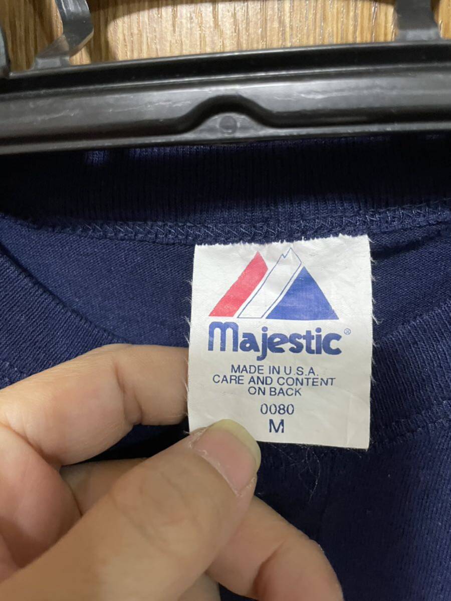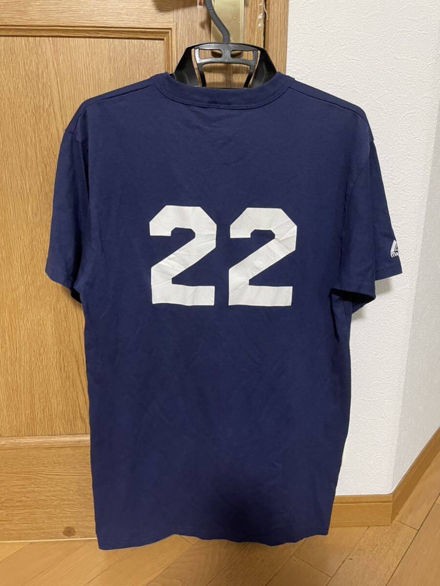 人気ブランド、Majesticの希少なヘンリーネックのUSA製のヴィンテージ Tシャツです。バックの22番のプリントも非常にインパクトがあります。