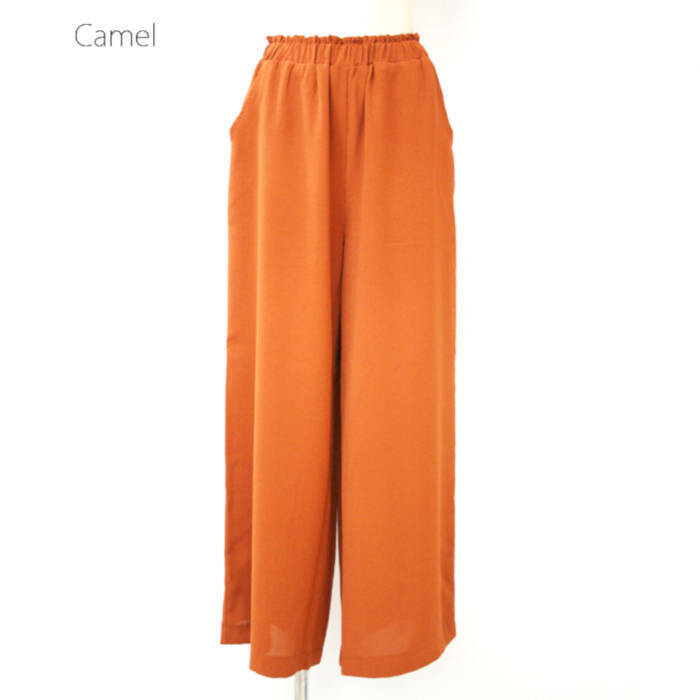 大人で落ち着いた色合いの1着あると大活躍なワイドパンツ。 ウエストが総ゴムなので履きやすさ抜群・楽ちん♪ さらっとした素材なのもポイント! トップスはTシャツを合わせてカジュアルに、ブラウス合わせて大人コーデに、、と 様々なコーデとも他のアイテムを邪魔せず、無地なので合わせやすいのも嬉しい |