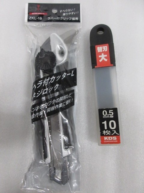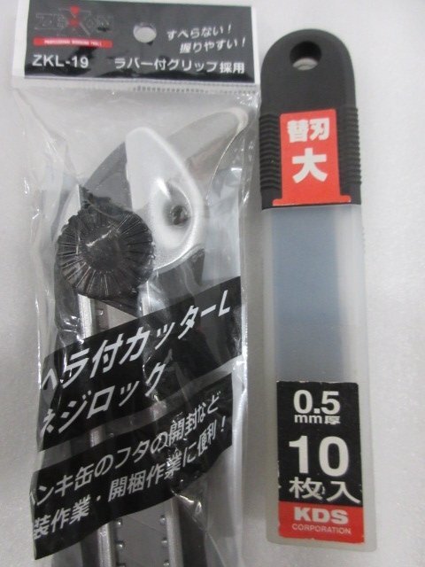KS ZEXON ヘラ付 カッターナイフ L ネジロック ZKL-19 KDS カッター 替刃 大 0.5mm厚10枚入 2点セット |