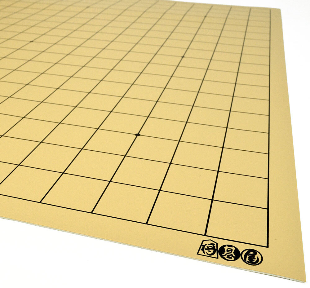 携帯便利な将碁屋マット19路囲碁盤です。将碁屋マット19路盤は当店将碁屋オリジナルの簡単なやや薄めのマット式の軟質塩ビ盤です。