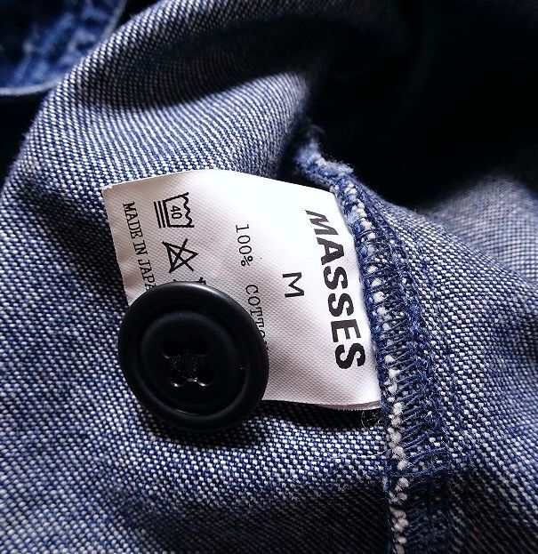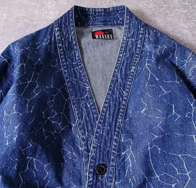 MASSES マシス DENIM CRACK DOUI ブリーチ クラック ノーカラー デニム ジャケット エンジニアコート カバーオール 道衣 メンズ (M)インディゴ ●r-111
