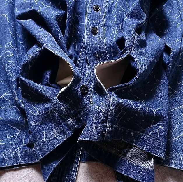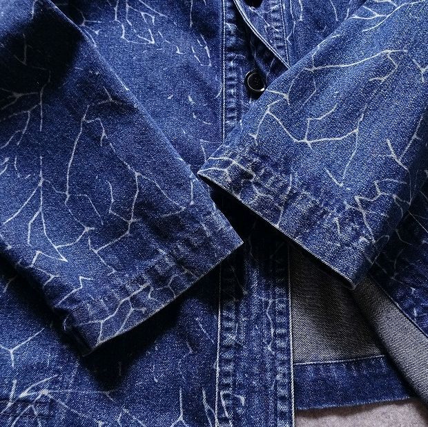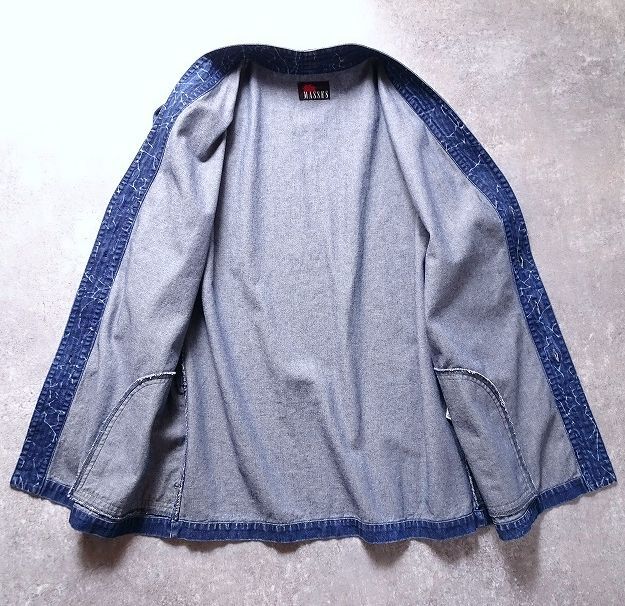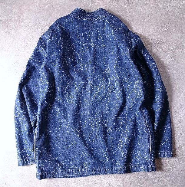 MASSES マシス DENIM CRACK DOUI ブリーチ クラック ノーカラー デニム ジャケット エンジニアコート カバーオール 道衣 メンズ (M) r-111