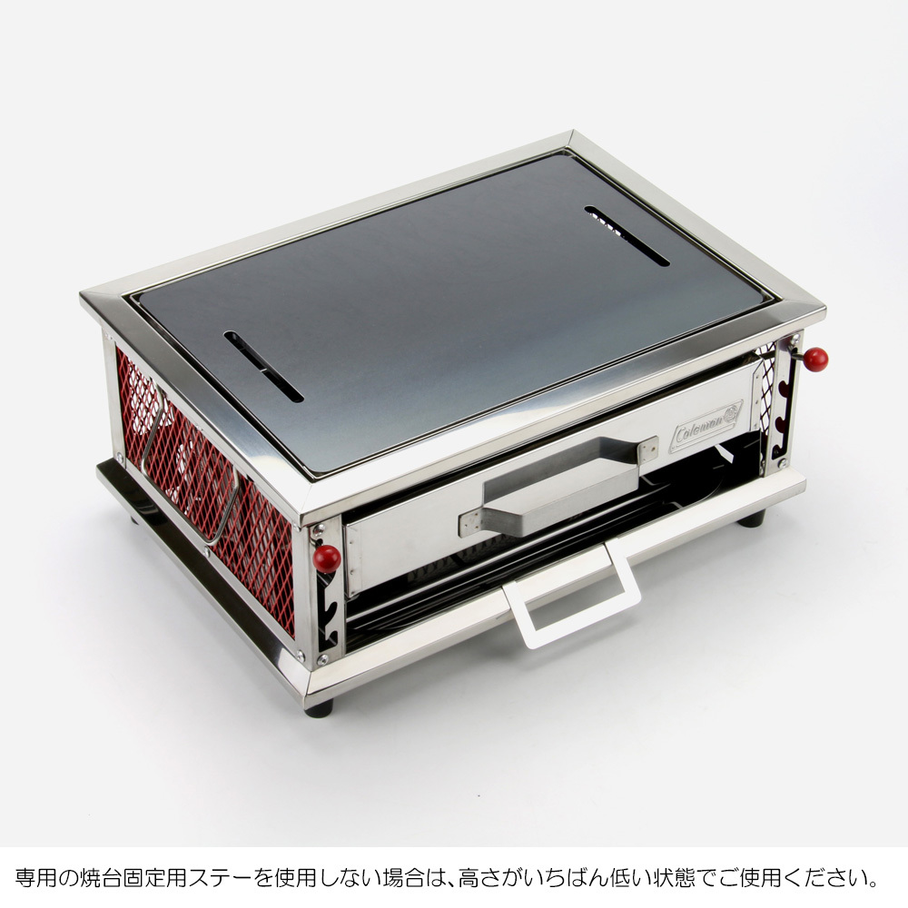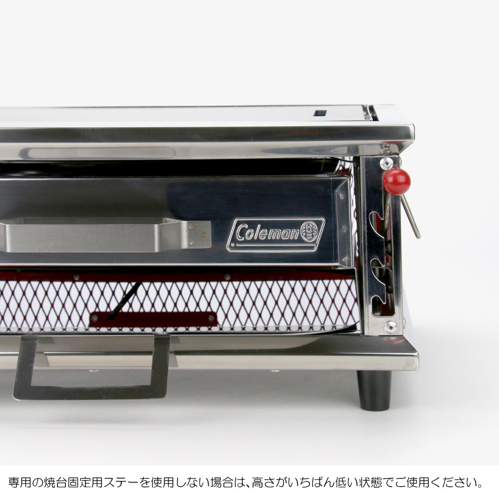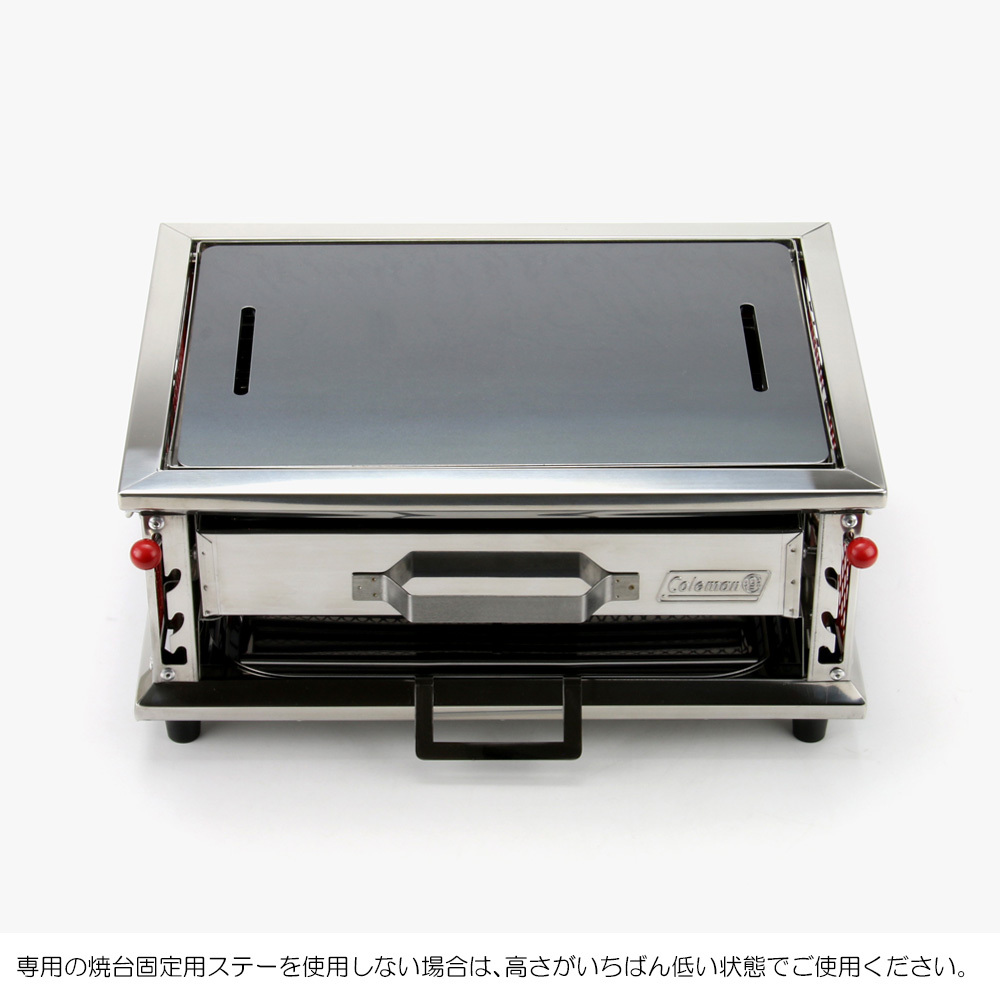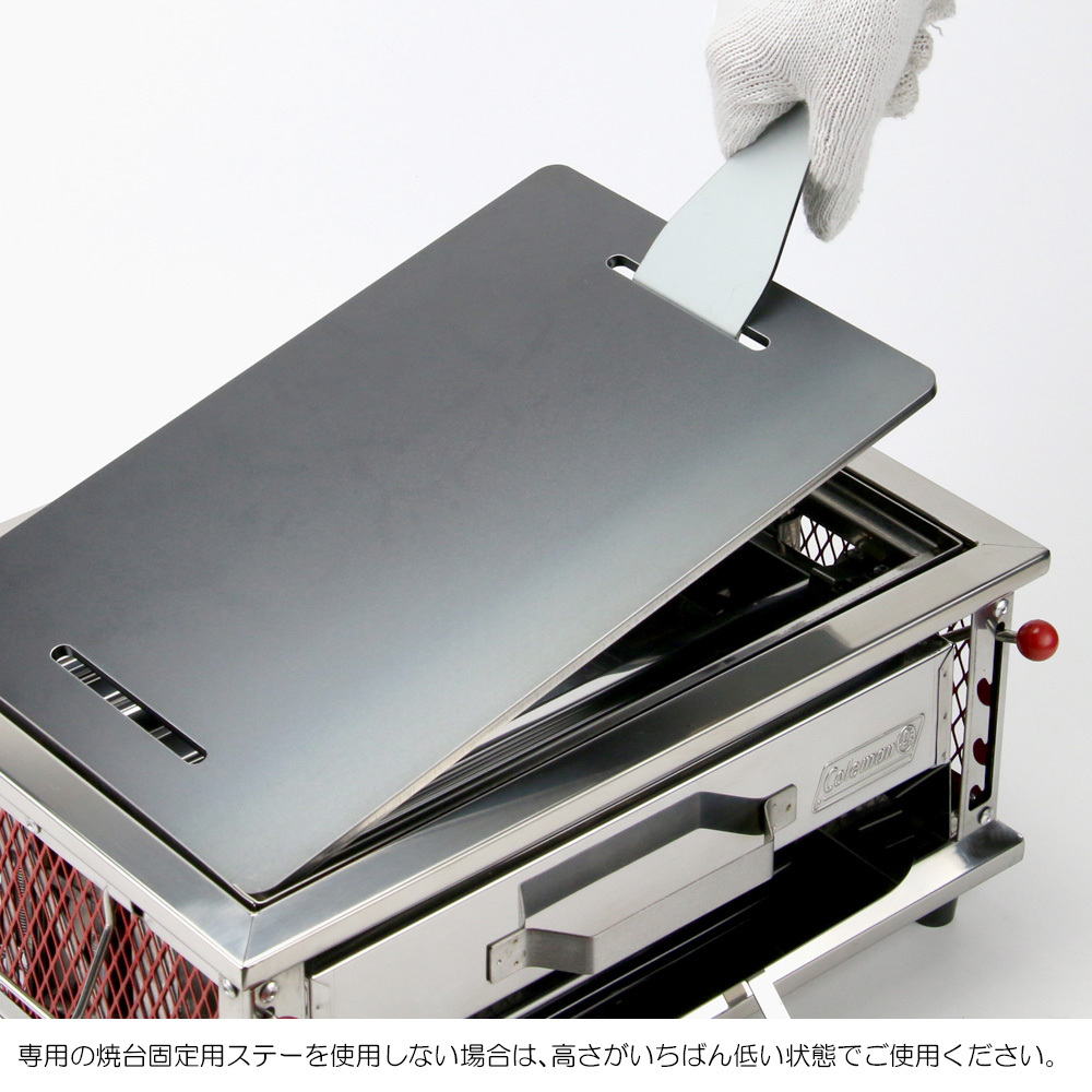 極厚鉄板をご使用の際は、焼台がいちばん低い状態でのご使用か、焼台固定用ステー【別売り】をご使用ください。