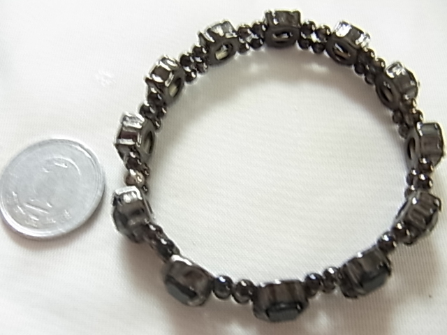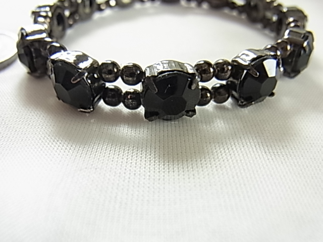 ビンテージ/ヴィンテージ オニキス調のブラックカラーのカボションストーン 輝石 煌めくビジュー レトロな素敵なブレスレット◎