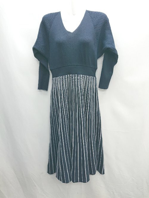 ◇ NOLLEY'S ボーダー柄 長袖 ロング丈 ワンピース サイズ38 ネイビー ホワイト レディース E