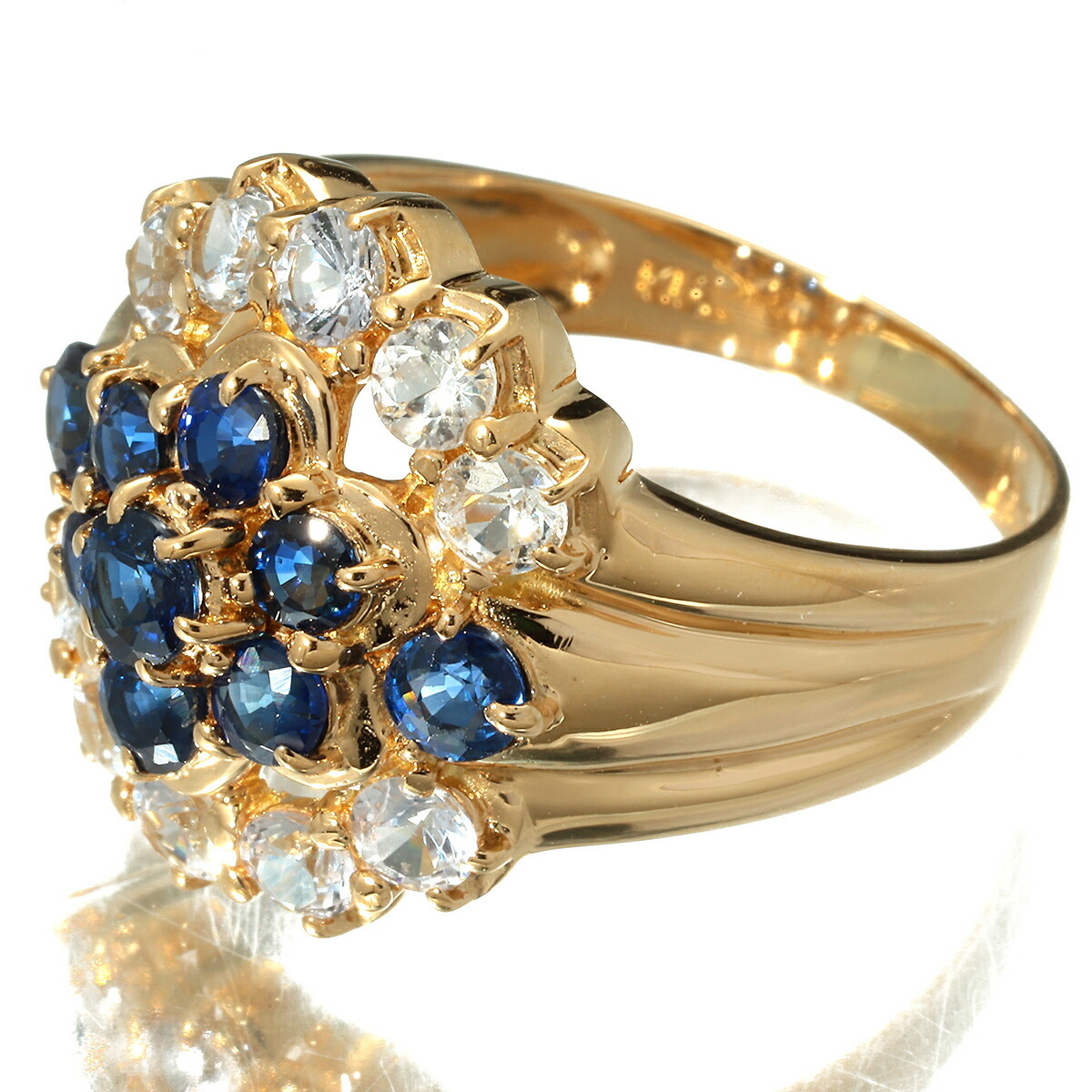 メインのフラワーモチーフにサファイアを使ったボリュームある贅沢なリング。ゴージャスなパーティーなどお呼ばれの時などお手元を華やかに盛り上げてくれるリングです。