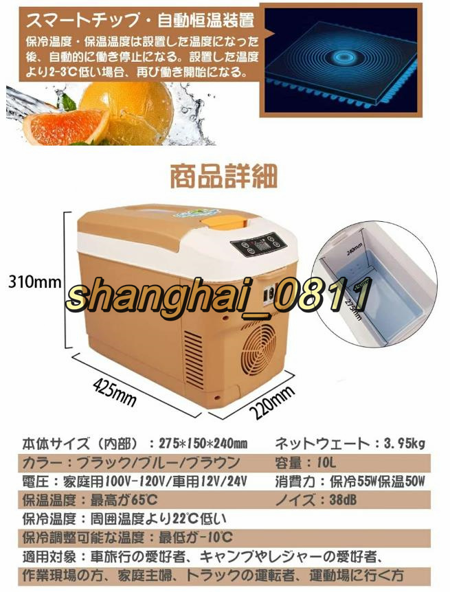 10L冷蔵庫 冷温庫 周囲温度より22℃低い 2電源式 AC100~120V DC12V/12V 小型 コンパクト 車用 カー トラック 保温保冷ボックス U224