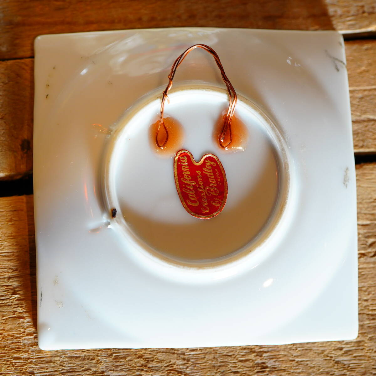 裏側に壁掛け用の金具が付いて壁掛けとして販売されていたものと思われます。