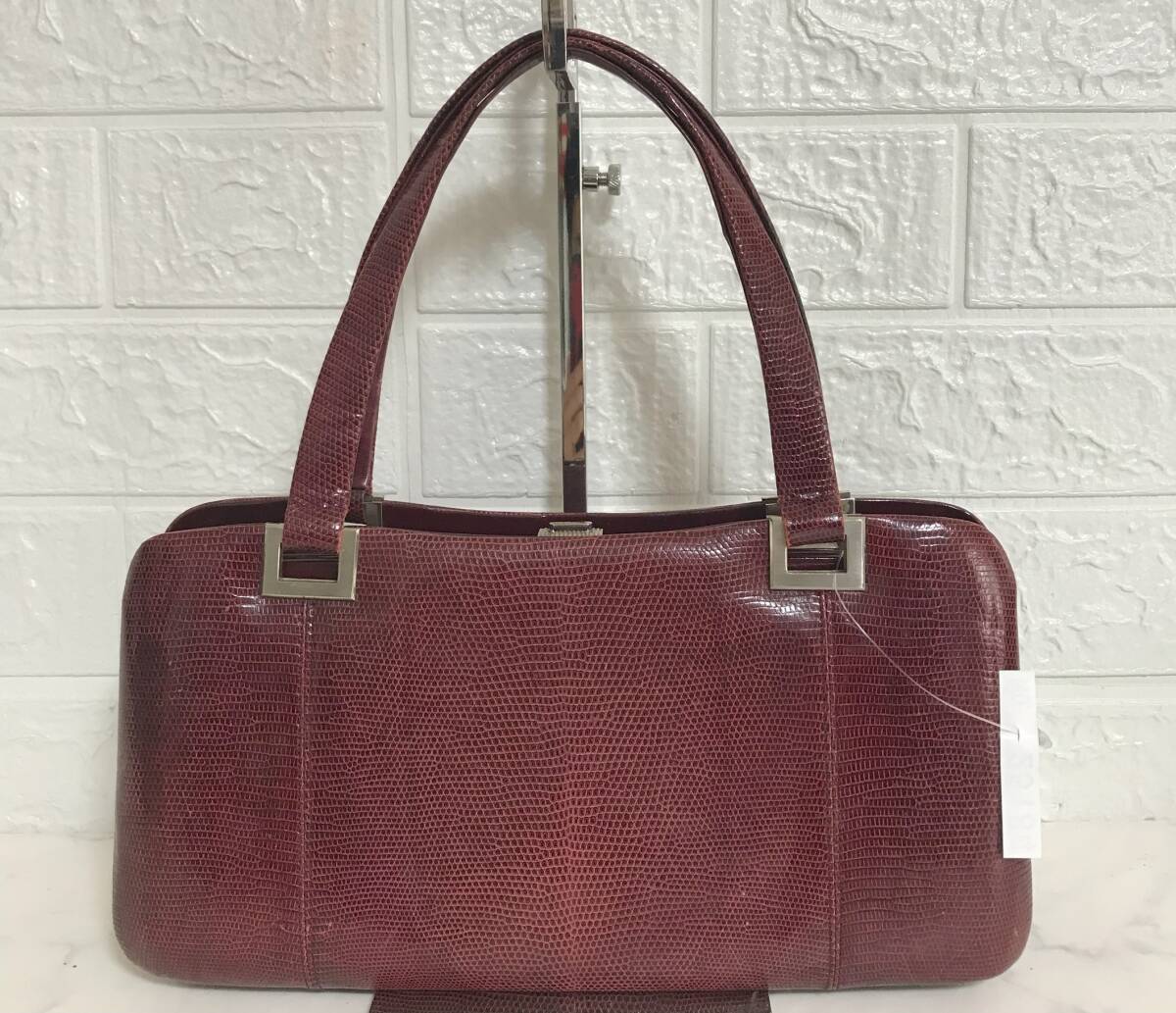 no25184 高級 NB リザード 本革 エキゾチック レザー 肩掛けショルダー フォーマル トート バッグ ☆