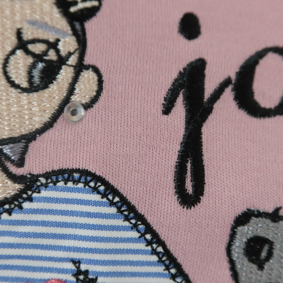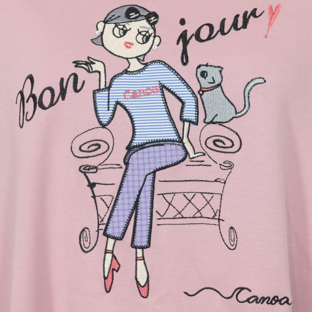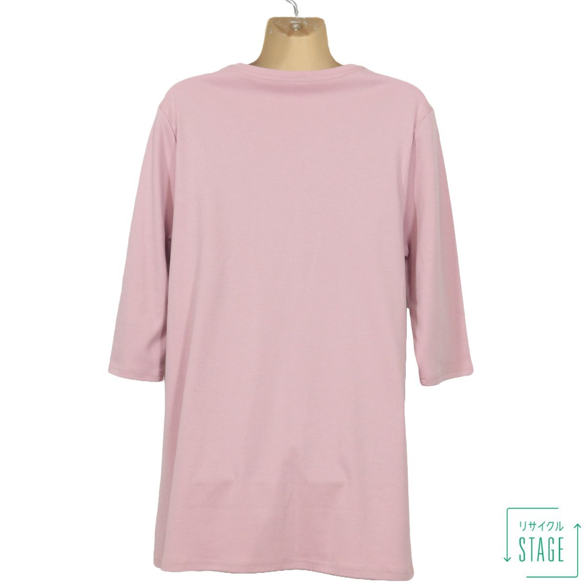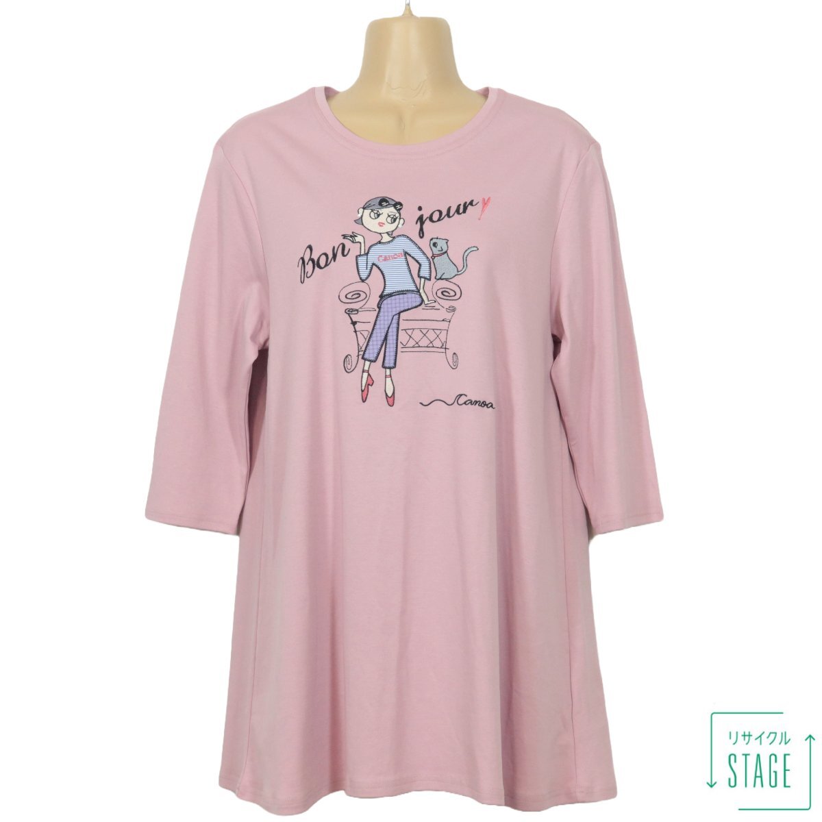 【美品】CANOA カノア★プルオーバー Tシャツ 七分袖 丸首 カノンちゃん 猫 刺しゅう レターパック可 サイズM ピンク系 z8156