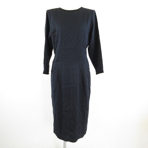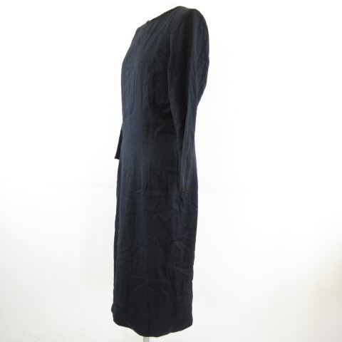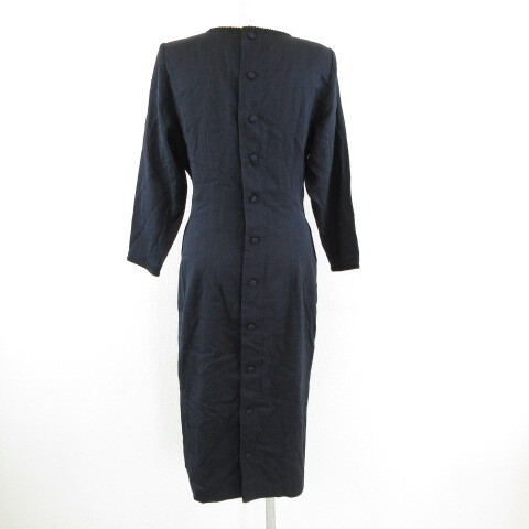 ヨンドシー 4℃ ワンピース ミモレ丈 七分袖 総柄 濃紺 *T800 レディース