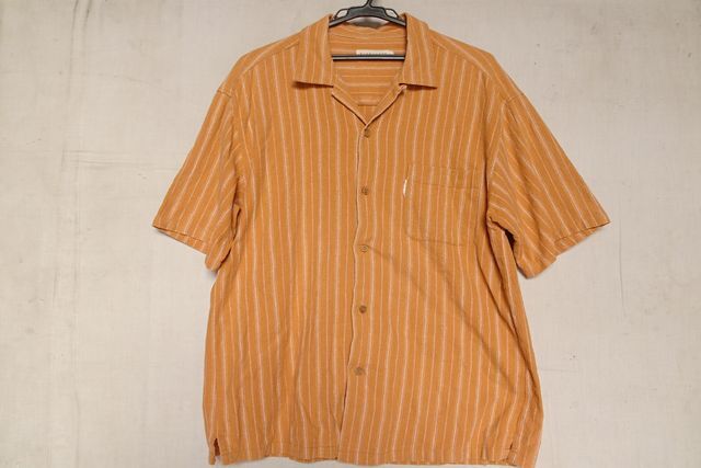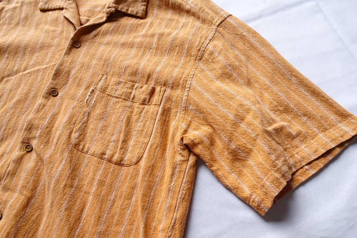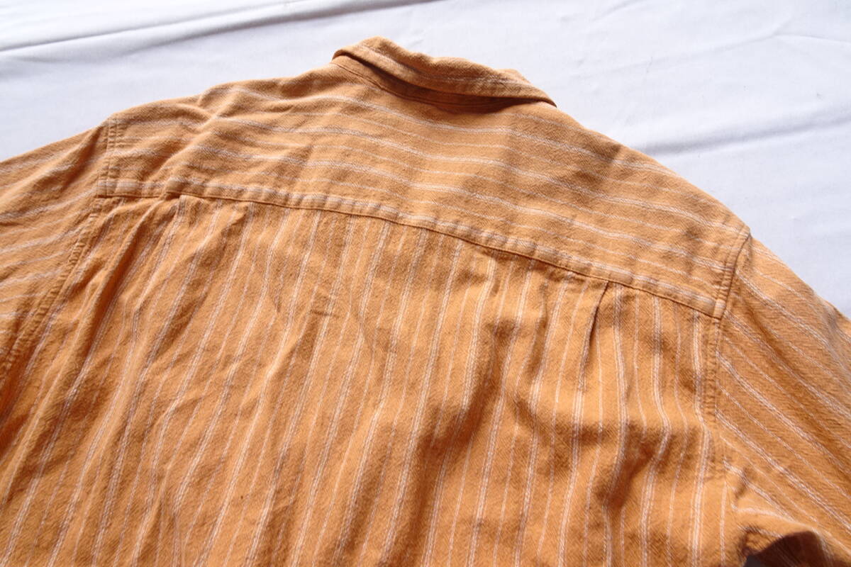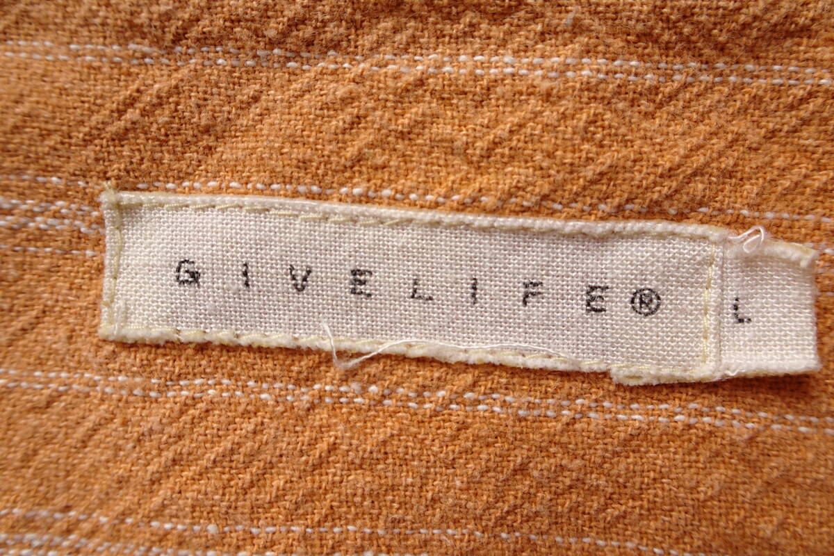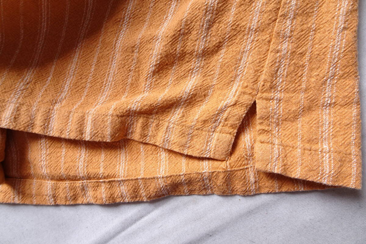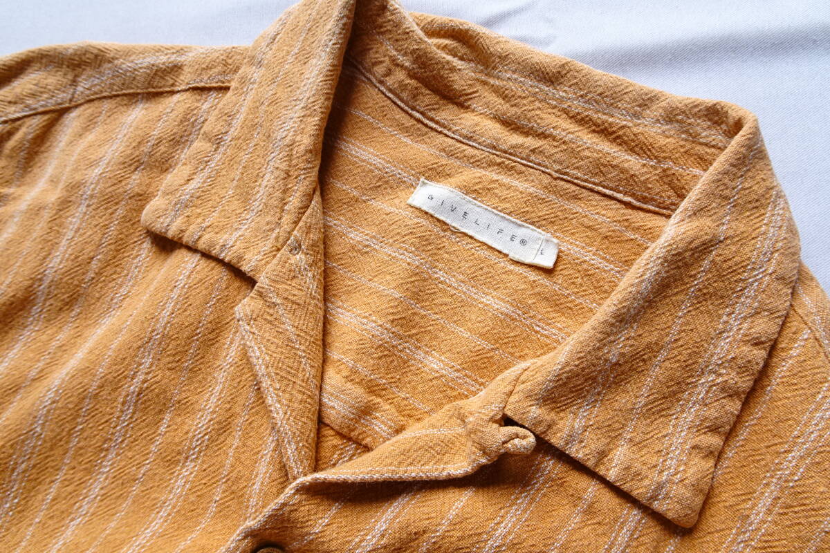 GIVELIFE/ギブライフ/半袖シャツ/オープンカラーシャツ/やや厚手素材/細ストライプ柄/裾サイドスリット/オレンジ/Lサイズ(6/28R)
