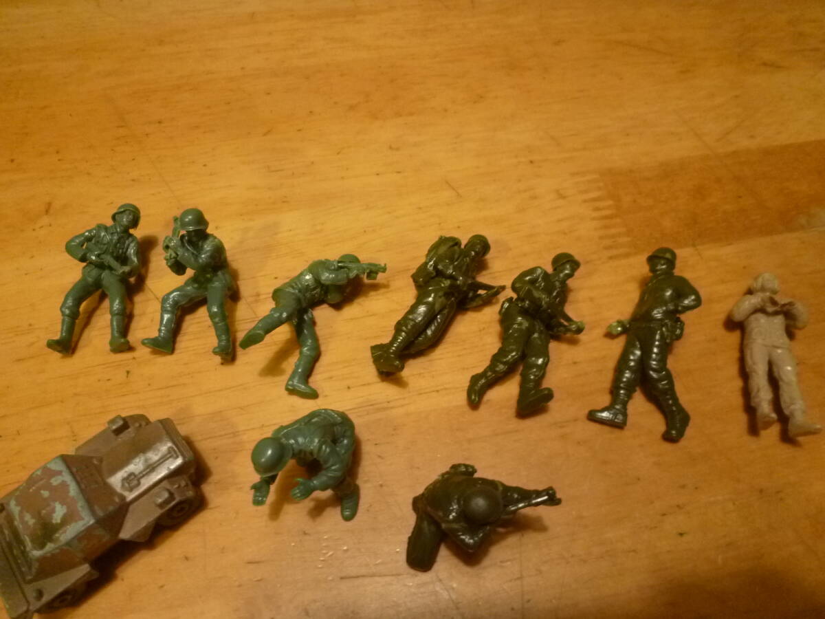 硬質プラ製の銃器を持った兵隊さんと軍車両?