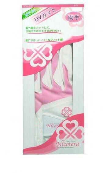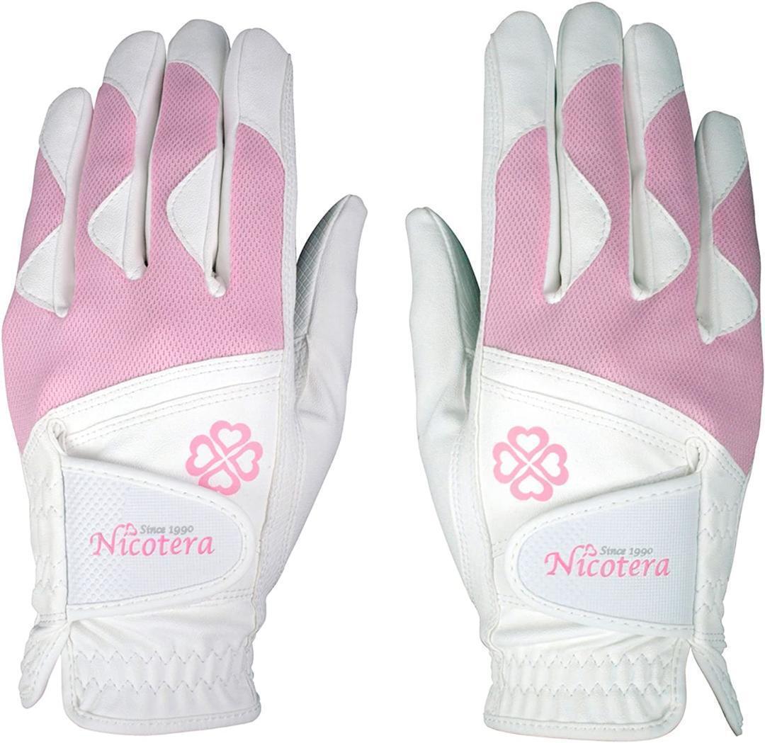 新品即決ニコテラ レディースゴルフグローブ 両手用 ホワイト M