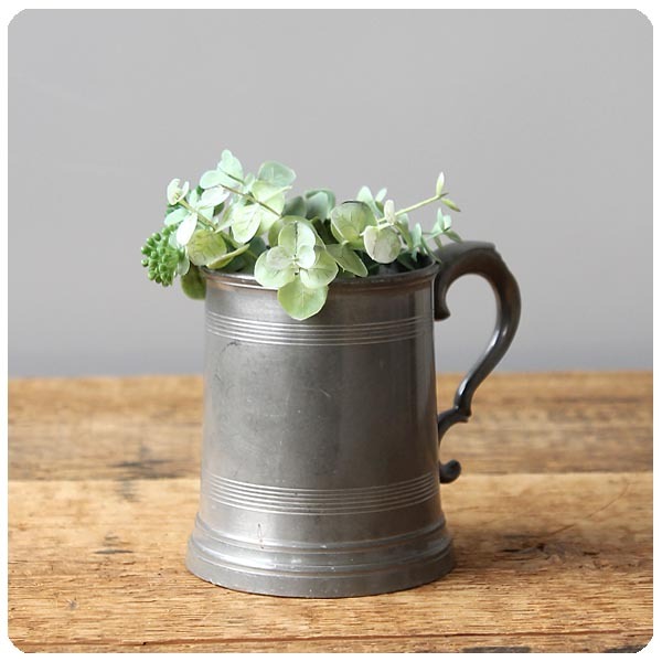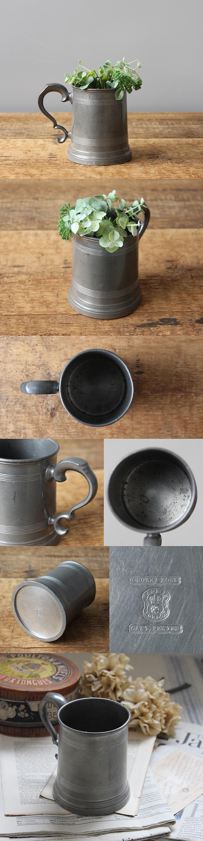 イギリス アンティーク ピューターマグカップ タンカード ビアジョッキ インテリア雑貨「フラワーベースに」P-504