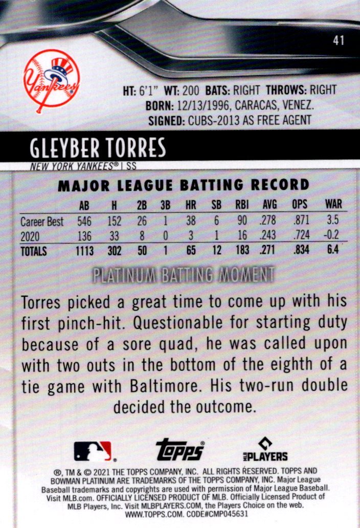 2021 Bowman Platinum グレイバー・トーレス Gleyber Torres #41