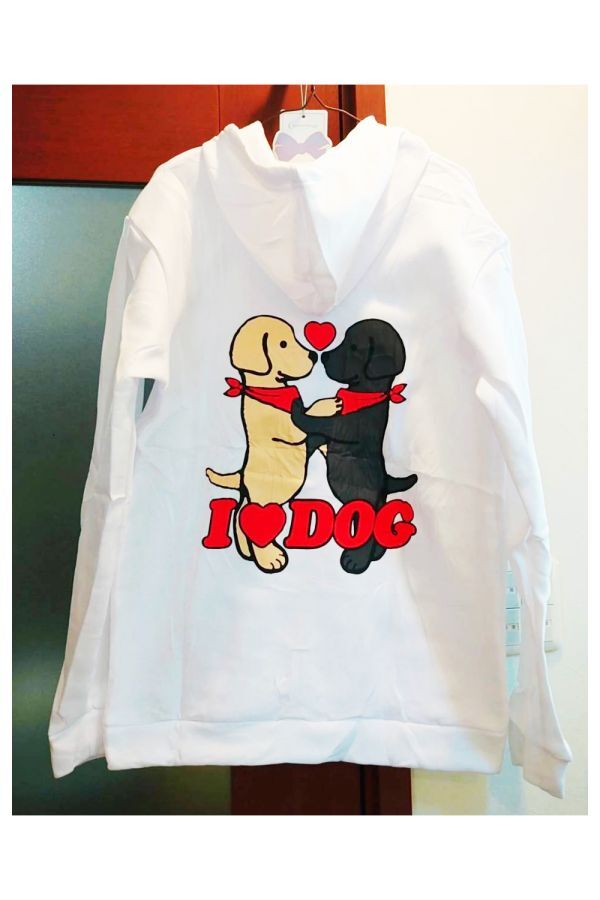 ラブラドールレトリーバーが”らぶらぶ”ともじりを入れたオリジナルのフード付きパーカーとなります。