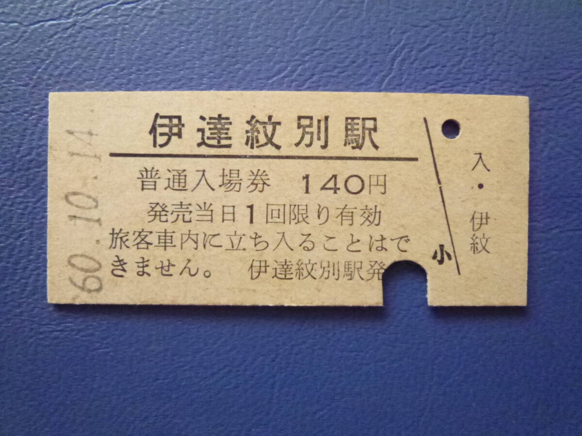 室蘭本線[伊達紋別駅]B型硬券入場券1枚です。
