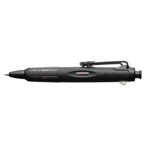| ノックする力で圧縮空気を作りインクを押し出す新機構のボールペン「エアプレス」シリーズに新色が登場しました。全長:122mm。軸径:12mm。 |
