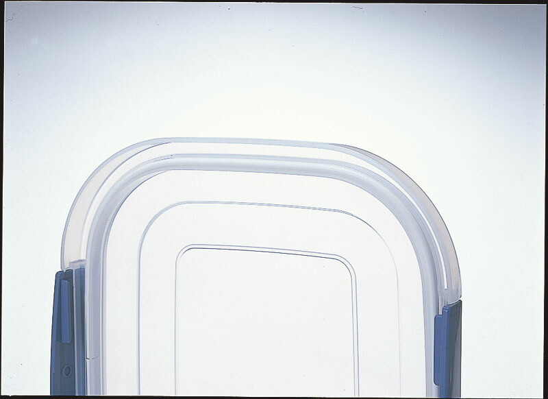 ロック式ケースの多くは、ロック部が本体に取り付けてあるため、サイドが出っ張ってしまいます。一方、本品は、フタに取り付けたダウンロック方式のため、ロック部が出っ張らず、無駄なすき間を作りません。また破損もしにくく、開閉のしやすさもアップしています。