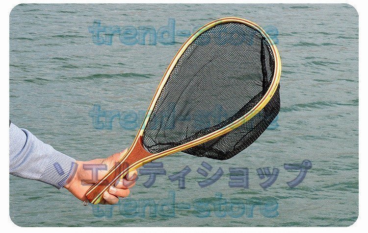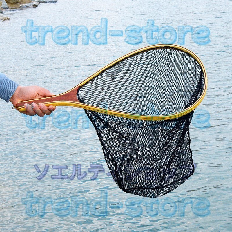 便利実用品★ 渓流 管釣り 木製 ランディングネット リリースネット ハンドネット タモ網 玉網 ネットの深さ約35cm フィッシング
