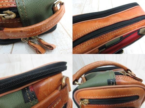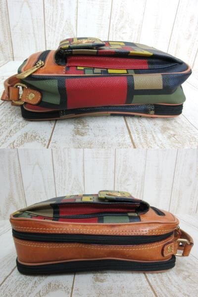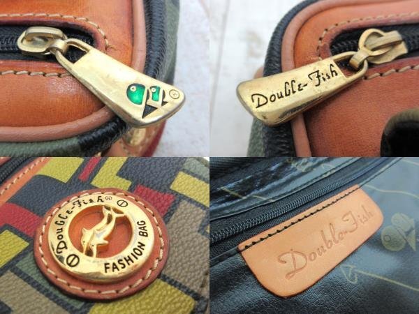Double Fish/ダブルフィッシュ:レザーハンドバッグ マルチカラー セカンドバッグ ハンドル ヴィンテージ 中古/USED