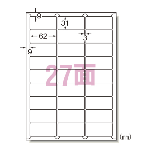 A4 27面 四辺余白付/シートサイズ:A4判(210mm×297mm)/ラベルサイズ:62mm×31mm(3列×9段)