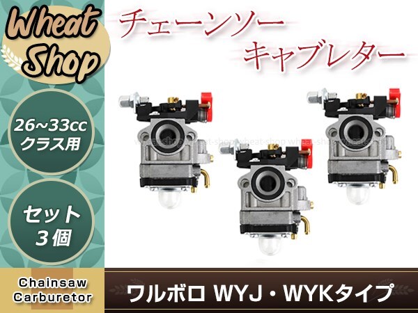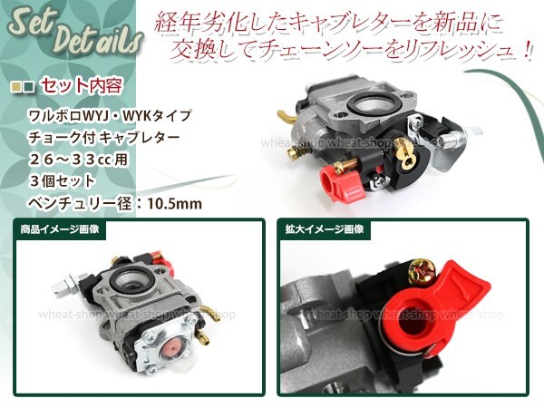 ワルボロWYJ/WYKタイプ チョーク付き キャブレター 3個 排気量 26cc~33用 互換品 芝刈機 刈払機 草刈機用 交換パーツ メンテナンス