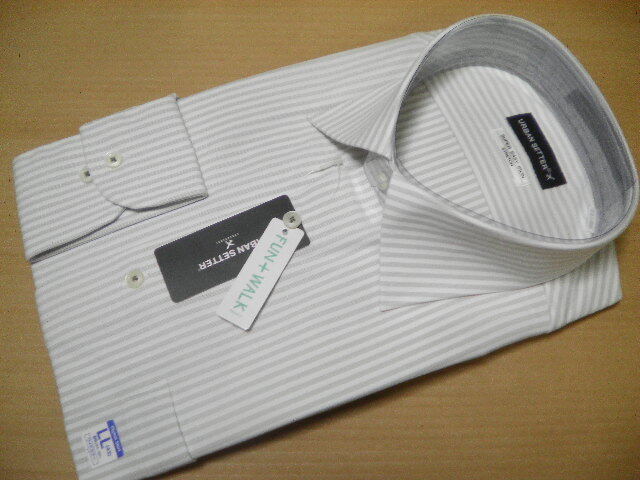 商品 情報 | ☆新品 下げ札付き☆です!!(モニター環境により色が写真と少し異なる場合があります) ☆カラー ホワイトにベージュ系の細いストライプ (写真参照) ☆サイズ LL(えり回り 43ーゆき丈 86)肩幅 約 47cm 胸回り 約 116cm 胴回り 約 105cm 身丈 約 79、2cm (素人採寸に付き多少の誤差はご了承下さい ) ☆ニット商品 高いストレッチ性が特徴のシャツ ☆素材 ポリエステル 100% Made in Myanmar ☆ブランド URBAN SETTER BLACK |