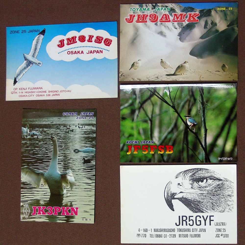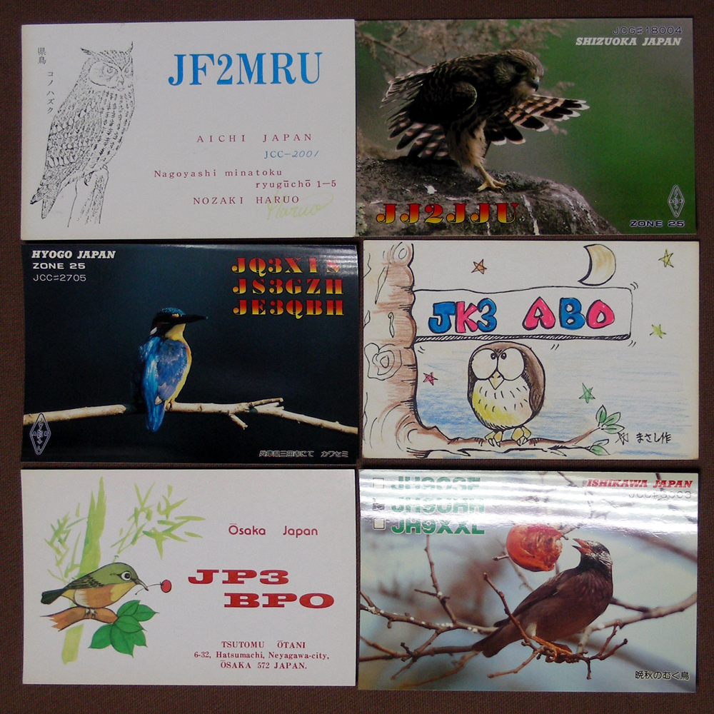 【レトロ交信証 鳥 バード】雷鳥 鷲 鶴 等 記入済26枚 ベリカード/QSLカード/アマチュア無線/受信証明書・真贋不明・匿名配送Set[24]