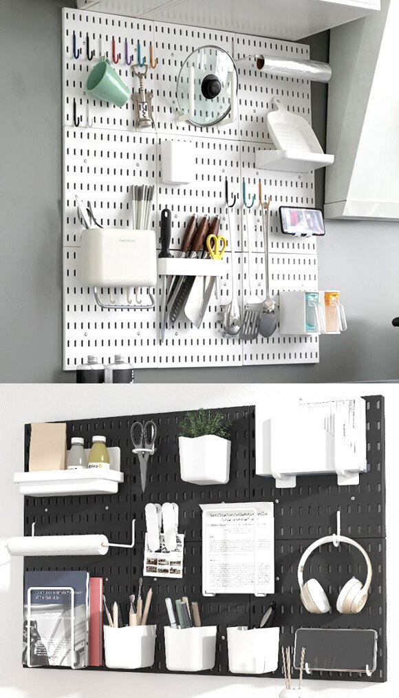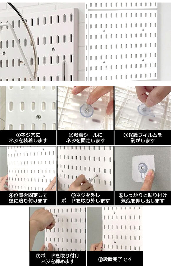 パンチングボード ブラック Lサイズ プラスチック製 壁面を収納空間に!穴開け不要で簡単取り付け AP-UJ0910-L-BK