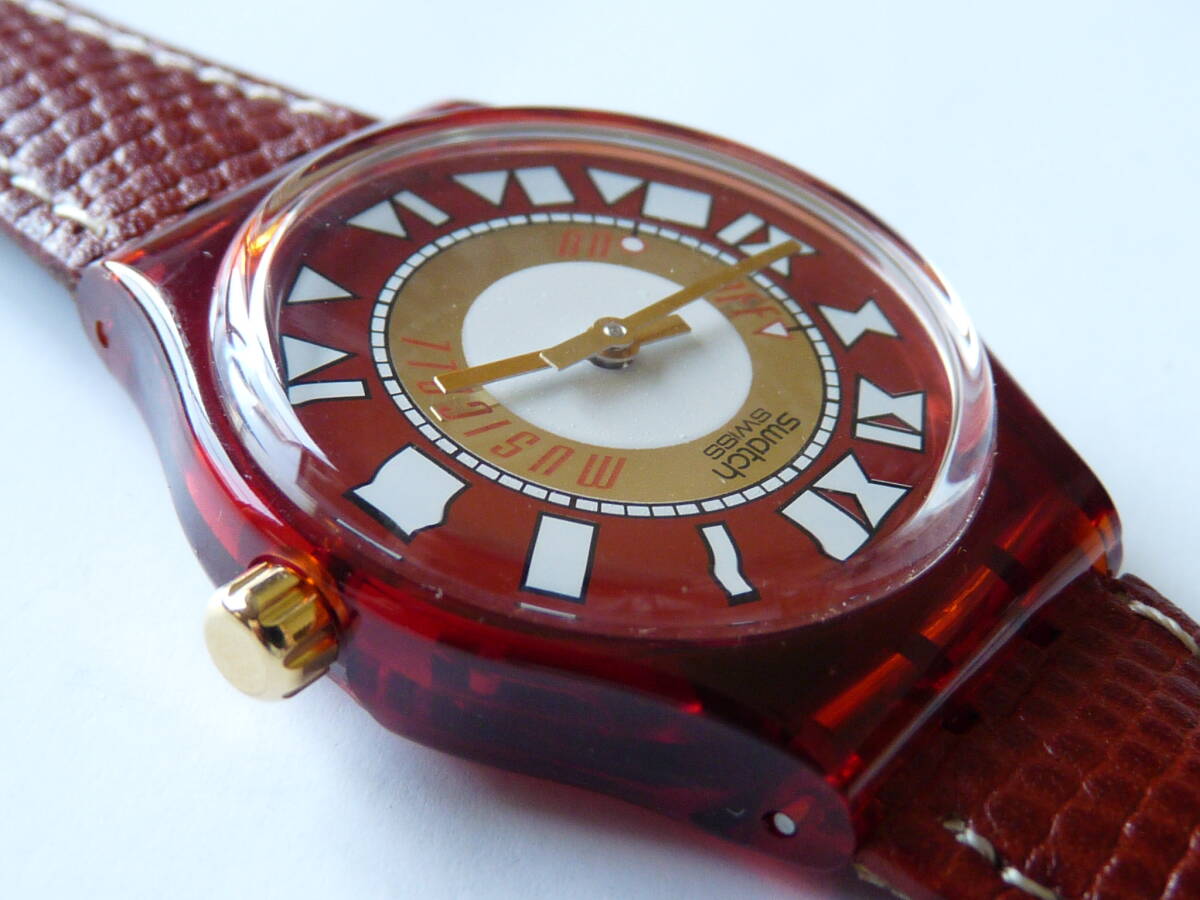 未使用 電池交換済 スウォッチ Swatch ミュージコール MUSICALL 1994年モデル Brown Piano SLF100 音不良有り