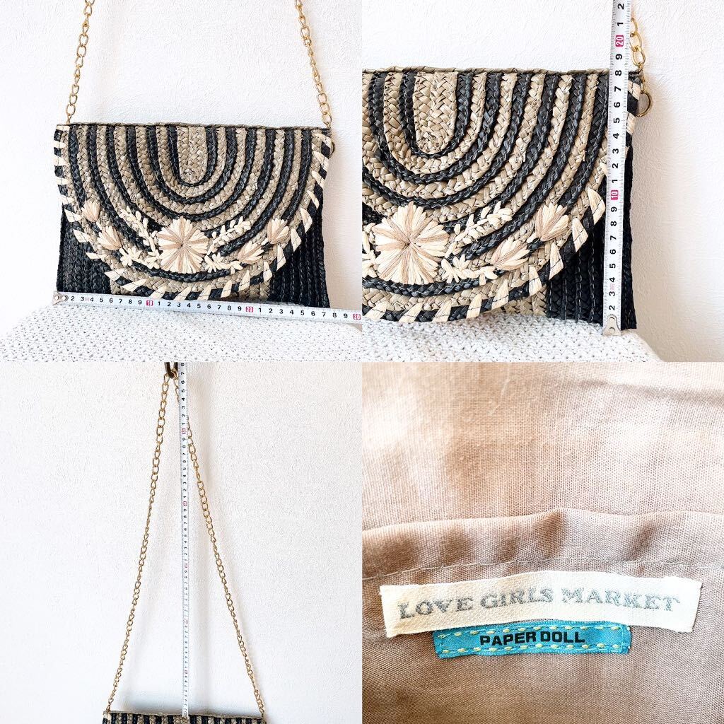 LOVE GIRLS MARKETラブガールズマーケット2wayグレー ボタニカル柄ホワイト黒ブラック花柄フラワー ポシェット白クラッチ ショルダーバッグ