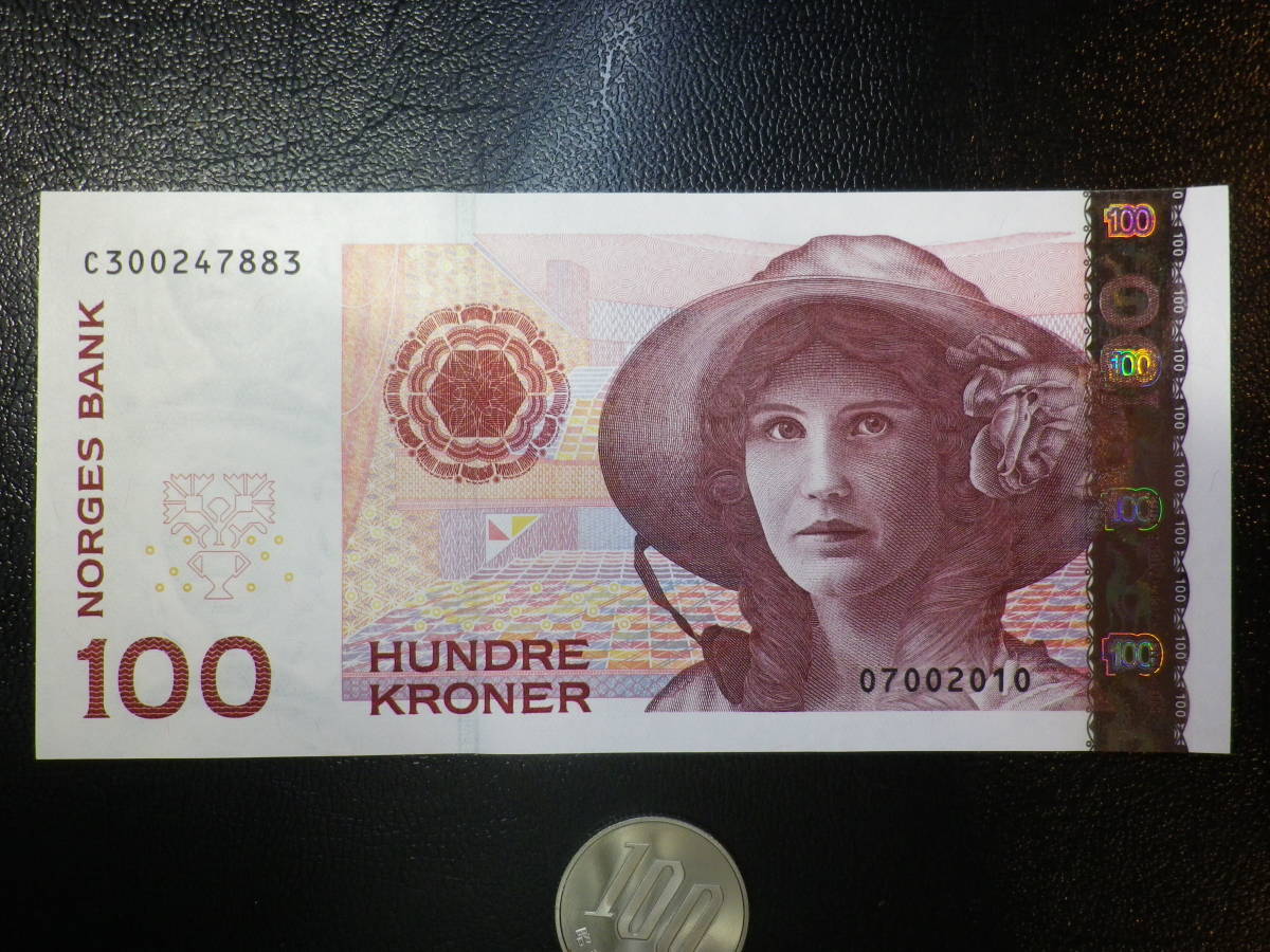 ノルウェー 2010年 100Kroner 極美品+ p-49d