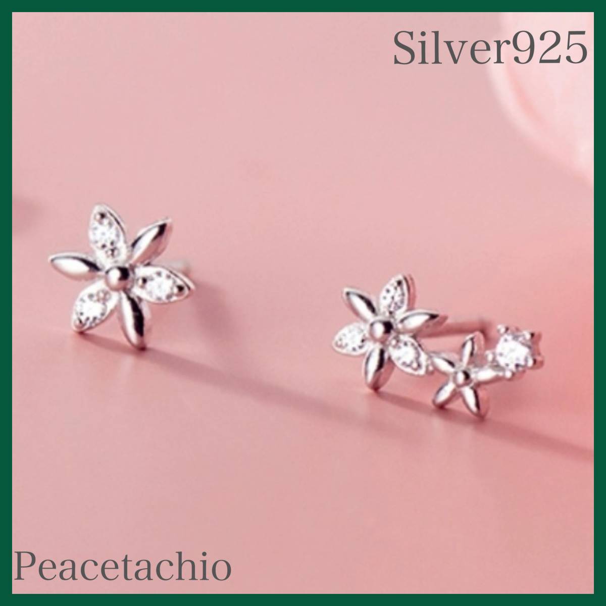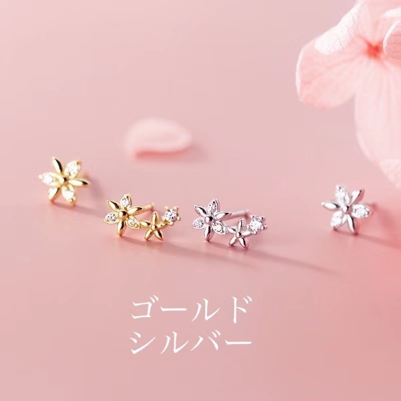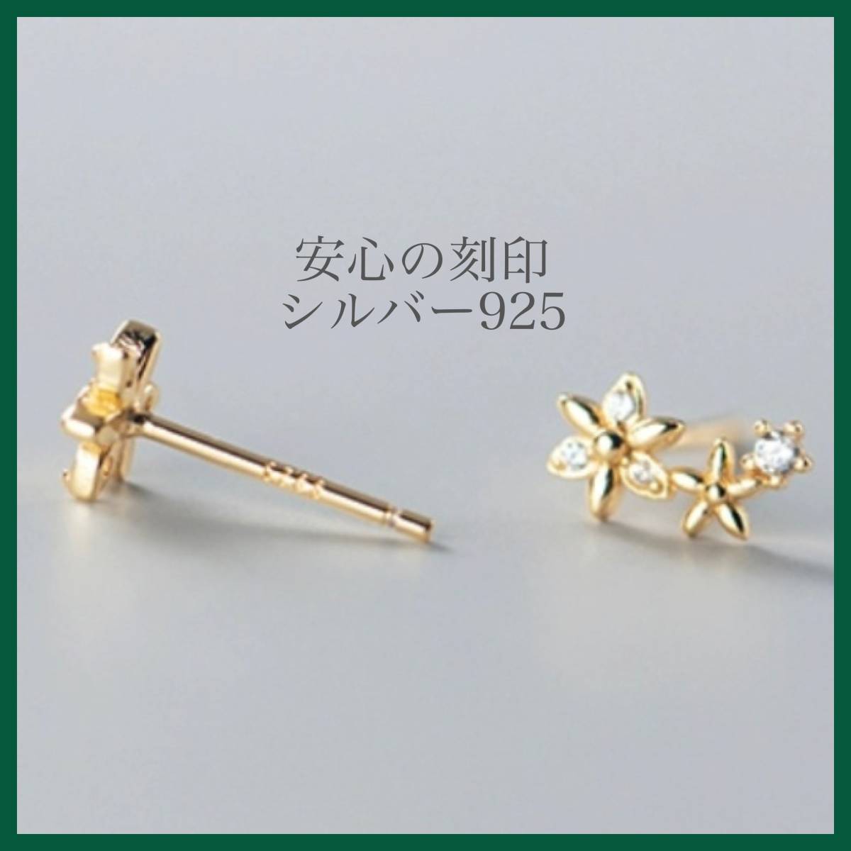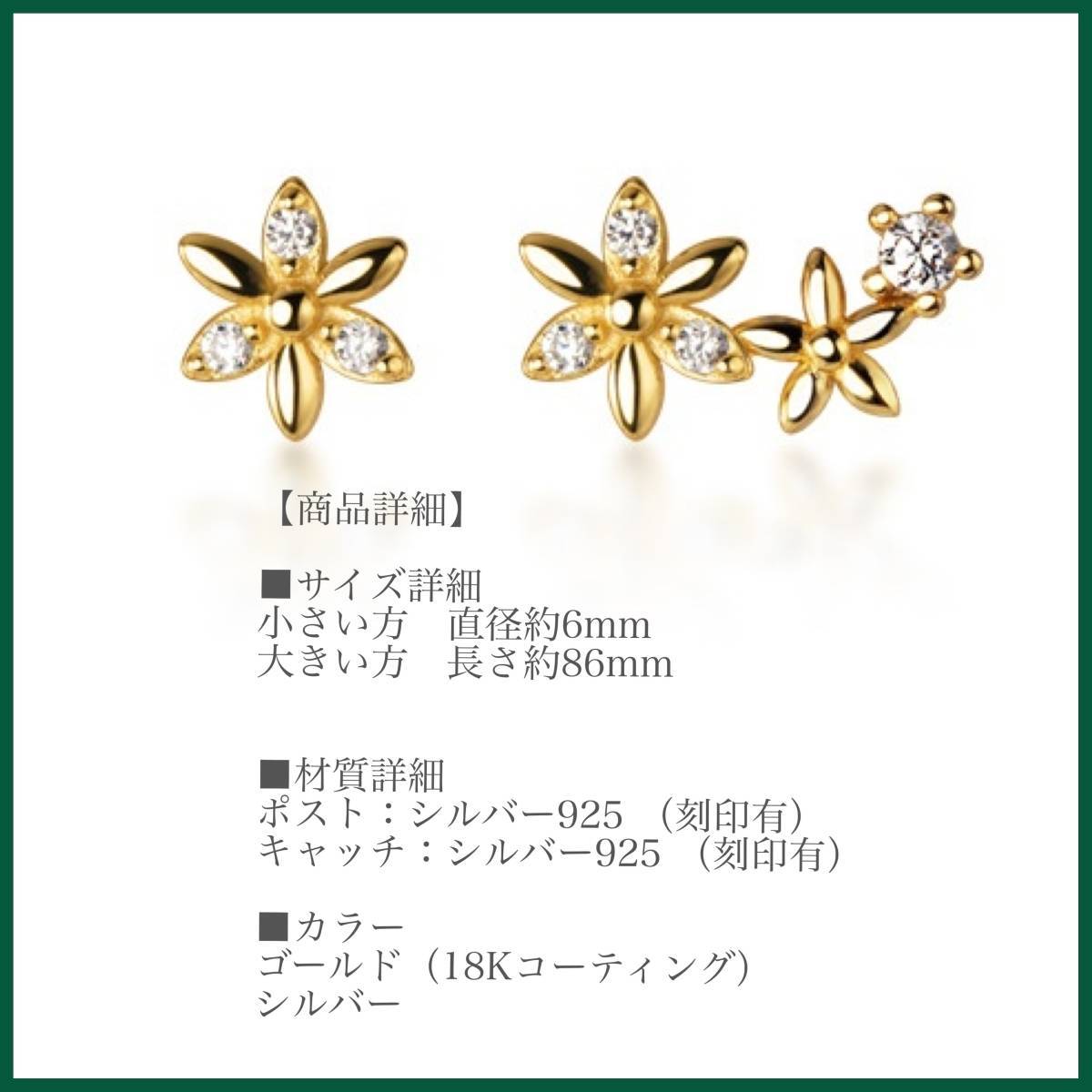 ピアス ゴールド Slver925 18Kコーティング フラワー 花 左右非対称