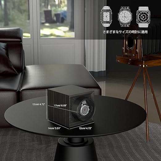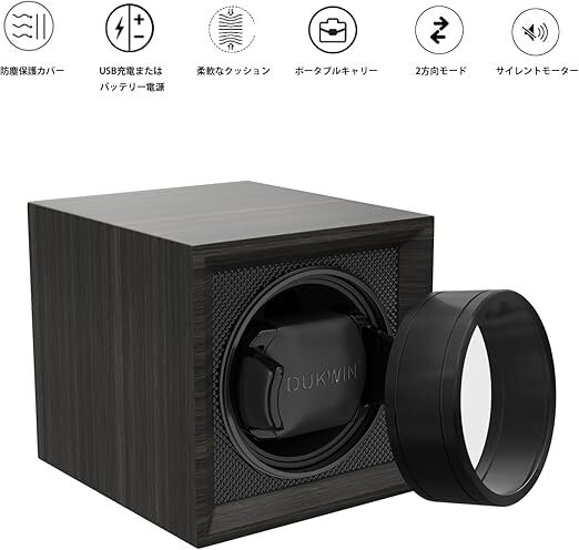 ワインディングマシーン 1本巻き ダーク木目模様 ウォッチワインダー 腕時計自動巻き上げ機 時計ケース 静音 AC電池電源 可伸縮表枕