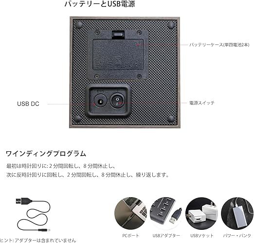 電源:USBケーブル(アダプター別売)または単三電池2本(別売)