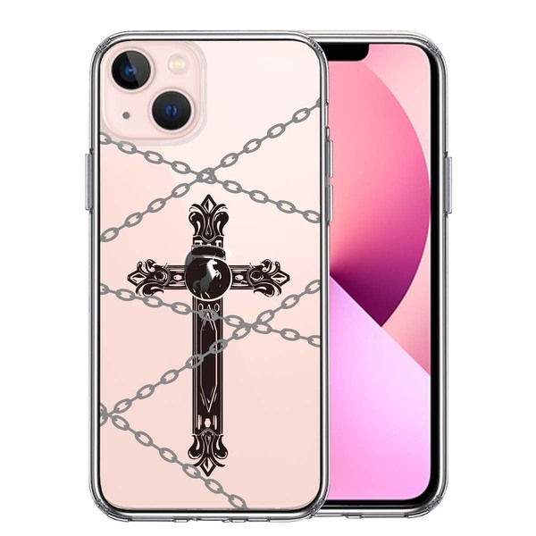 iPhone13 ケース クリアクロス &チェーン スマホケース 側面ソフト 背面ハード ハイブリッド