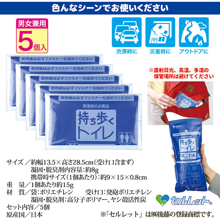 携帯用トイレ 非常用トイレ 簡易トイレ 車内 車 凝固剤 脱臭剤 排尿 おしっこ 活性炭 渋滞 高速道路 災害 天災 避難時 防災 日本製 国産