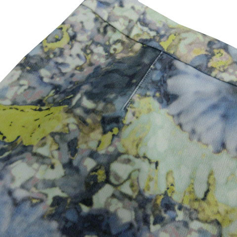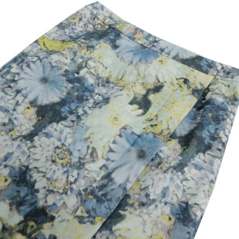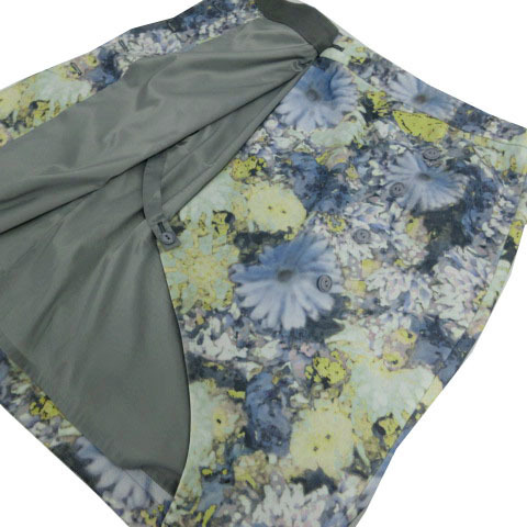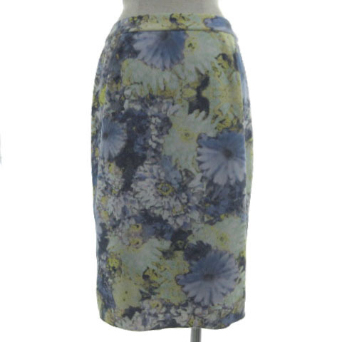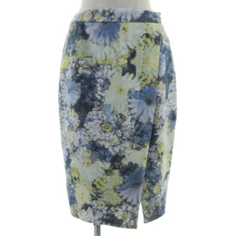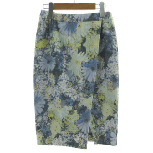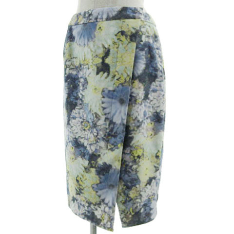 クードシャンス CdeC COUP DE CHANCE スカート ラップ タイト ミモレ丈 花柄フォト転写プリント ストレッチ 青系 マルチカラー 38