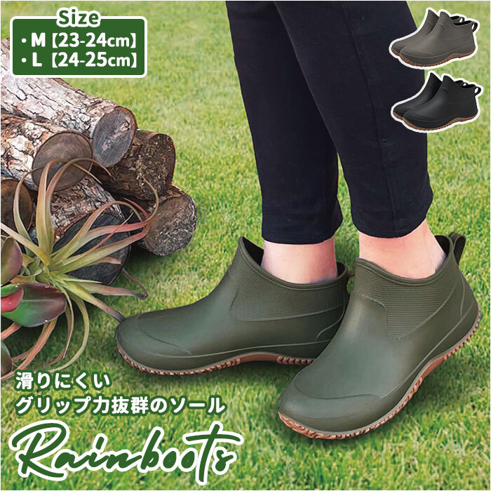 ☆ ブラック ☆ M(23-24cm) レインブーツ レディース 通販 おしゃれ ショートブーツ ガーデンブーツ レインシューズ ガーデニング DIY 無