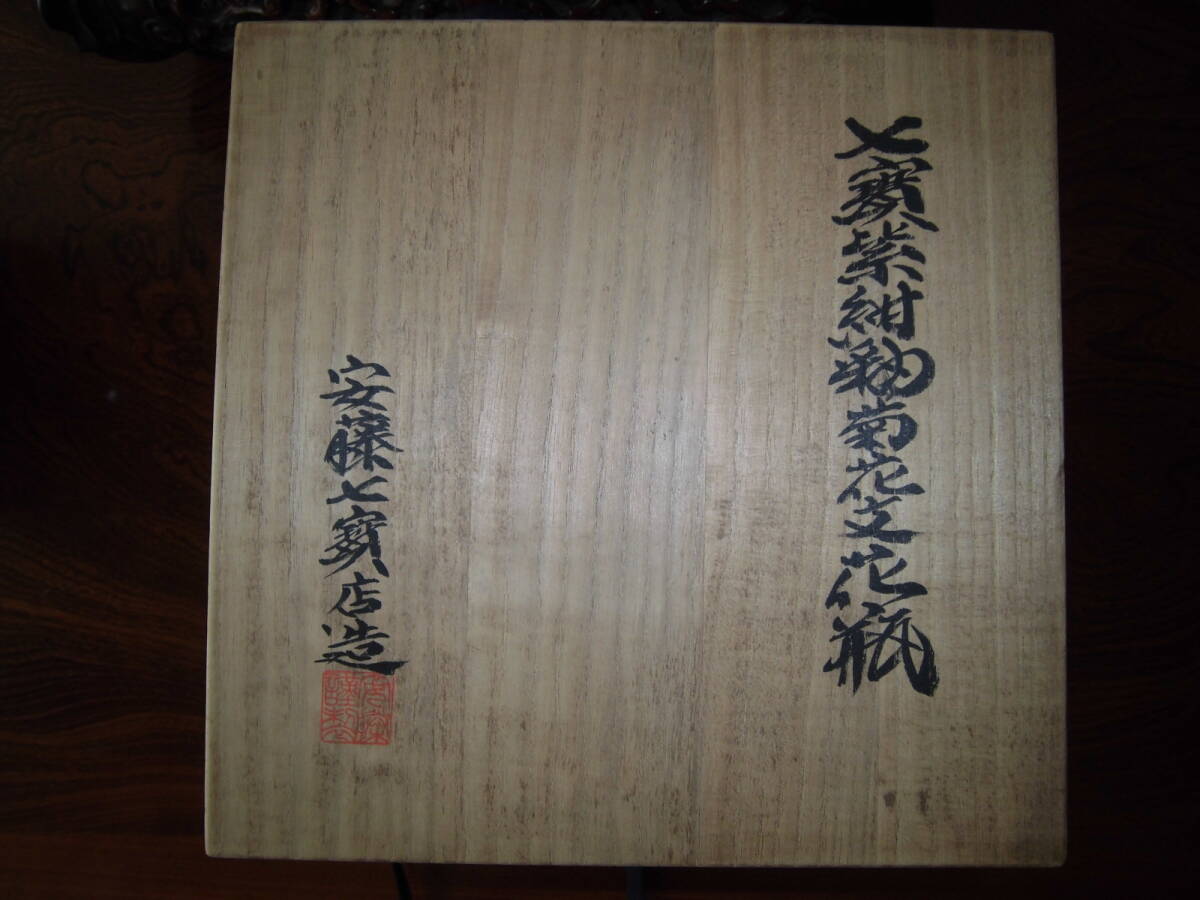 七宝紫紺釉菊花文花瓶 安藤七宝店造