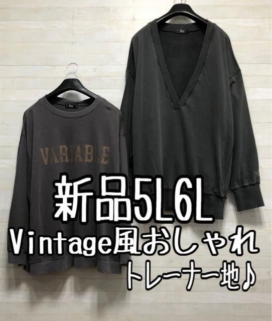 新品☆5L6L♪Vintage風おしゃれトップス2枚セット♪アメカジ☆x965