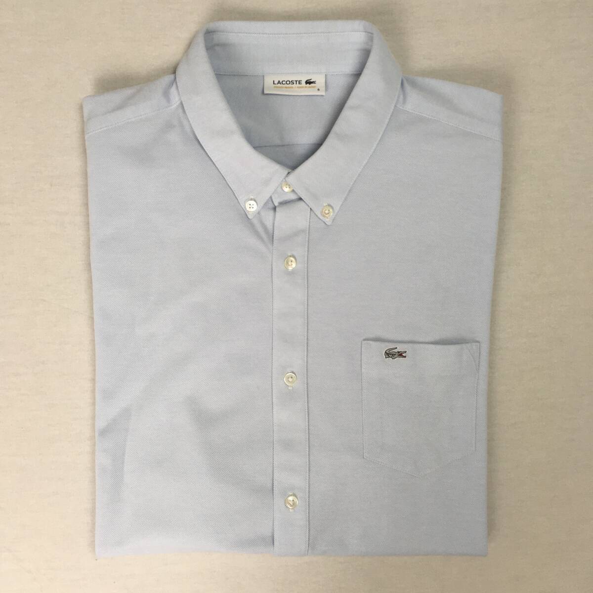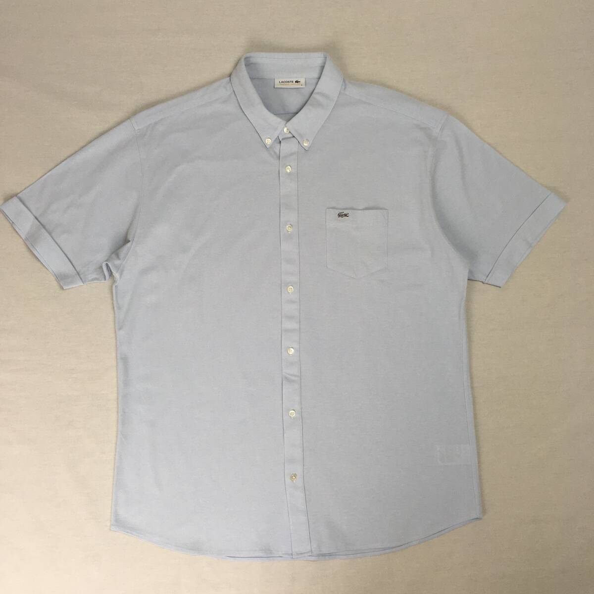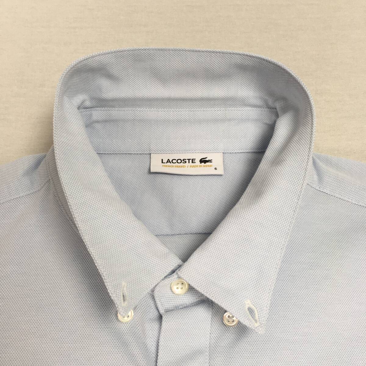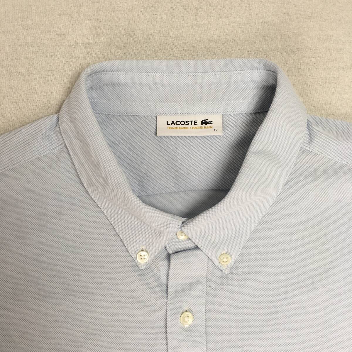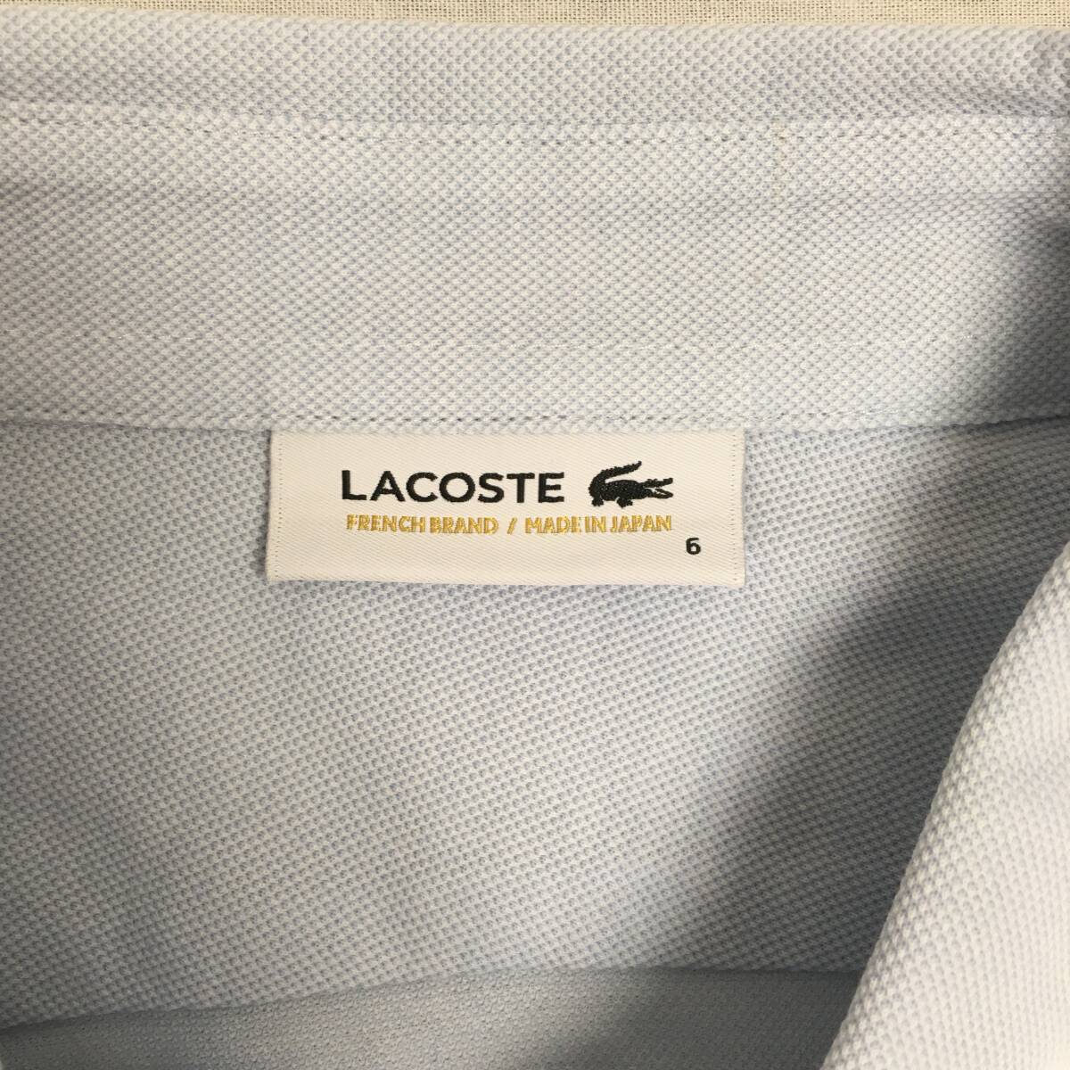 【美品】LACOSTE ラコステ シャツ PH764E サイズ6 ビズポロ シルバーワニ 水色 日本製 半袖