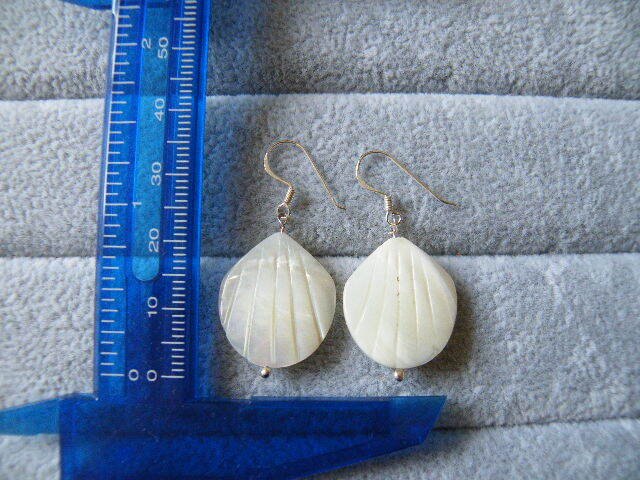 R00115.貝 シェル シルバー925 ハンドメイド ピアス.